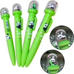 Zielony długopis żelowy z uroczą pandą w przezroczystej kopule oferuje nie tylko praktyczne rozwiązanie do pisania, ale także zabawny i estetyczny akcent na biurko lub do szkolnej torby. W górnej części obudowy znajduje się miniaturka pandy w ruchomej kopule, co nadaje produktowi wyjątkowy urok.
