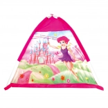 Różowy namiot z wróżką i zamkiem pobudza wyobraźnię i tworzy przytulne miejsce do czytania, zabawy i relaksu.