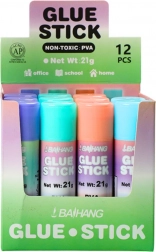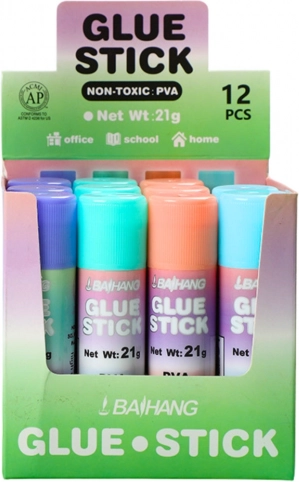 Klej w sztyfcie pakowany jest w miksie pastelowych kolorów. Sprzedawany pojedynczo lub w zbiorczym opakowaniu zawierającym 12 sztuk.