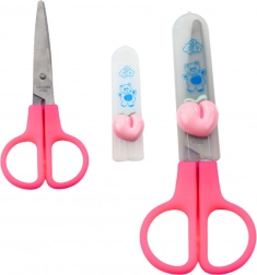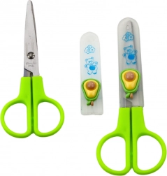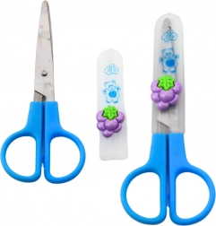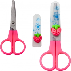 Nożyczki mają zaokrąglone końcówki i osłonkę ochronną dla maksymalnego bezpieczeństwa podczas użytkowania przez dzieci.