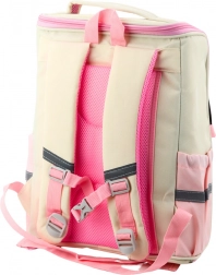 Specjalny zamek wokół plecaka umożliwia jego łatwe rozszerzenie i zwiększenie pojemności, co jest idealne na dni, kiedy dziecko potrzebuje więcej miejsca na swoje przybory szkolne. Przednia część zawiera dwie praktyczne kieszenie odpowiednie na drobiazgi, piórnik lub przekąskę. Po bokach znajdują się elastyczne kieszenie na butelkę lub bidon.