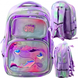 Plecak szkolny w pastelowych odcieniach niebieskiego, fioletowego i różowego to idealny wybór dla dzieci, które chcą połączyć funkcjonalność ze stylowym wyglądem. Plecak oferuje dwie przestronne komory, z których główna ma praktyczną przegrodę ułatwiającą organizację książek i zeszytów.