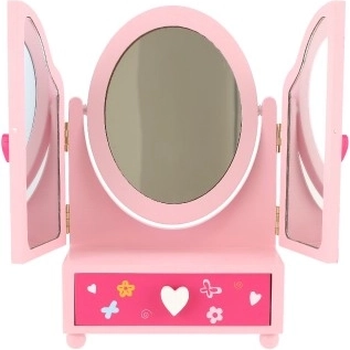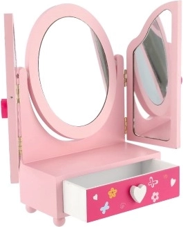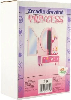 Urocze dziecięce toaletowe lusterko ze szkatułką w motywie PRINCESS ucieszy każdą małą elegantkę. Trzyczęściowe lusterko z bocznymi skrzydłami dla lepszego podglądu, praktyczna szufladka na skarby oraz solidne drewniane wykonanie w delikatnym różowym kolorze. Idealne do przechowywania pierścionków, bransoletek i koralików oraz do wspierania kreatywnej zabawy.