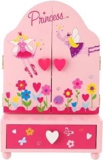 Pierścionki, bransoletki i koraliki znajdą miejsce w praktycznej dolnej szufladce z uroczymi motywami serduszek i kwiatów.