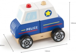 Drewniana układanka Viga Policyjny samochód oferuje dzieciom kilka sposobów zabawy: mogą złożyć auto z elementów, trenować chwyt i koordynację, a następnie jeździć nim po mieszkaniu w pościgu za złodziejami. Solidne drewniane wykonanie, gładkie krawędzie i nasycone kolory zapewniają bezpieczną i długotrwałą frajdę.