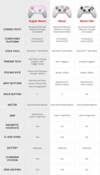 GameSir Super Nova łączy najwyższe technologie z eleganckim designem. Magnetyczne drążki Hall Effect o żywotności do 5 milionów cykli oraz precyzyjne spusty Hall z blokadami gwarantują płynne działanie bez dryfu i błyskawiczną reakcję. Trzy tryby łączności (Bluetooth, bezprzewodowe 2.4G przez dongle, kabel USB‑C) oraz częstotliwość odpytywania 1000 Hz dają przewagę w każdej grze.