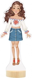 - Magnetyczna lalka, 30 magnetycznych elementów (ubrania, buty, akcesoria), drewniana podstawka