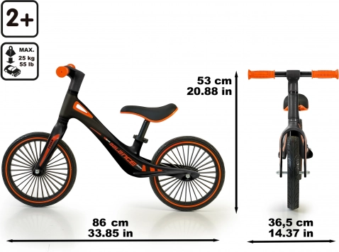 - Regulowane siodełko – rośnie wraz z małym rowerzystą.