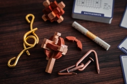 Każda łamigłówka została starannie zaprojektowana, aby stanowić wyzwanie nawet dla najbardziej doświadczonych rozwiązywaczy. Delektuj się połączeniem drewna i metalu, które tworzy harmonię między starożytną estetyką a nowoczesnym designem.
