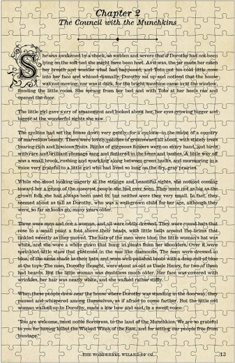 Przeżyj magię świata Czarnoksiężnika z Krainy Oz dzięki tym unikatowym dwustronnym puzzlom. Na jednej stronie zanurzysz się w zachwycającej ilustracji kultowej sceny, a na drugiej znajdziesz urzekający fragment książki.