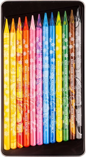 Kredki są zapakowane w stylowe metalowe pudełko, które zawiera 12 sztuk tej jedynej w swoim rodzaju pomocy dla wszystkich miłośników kreatywności.