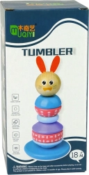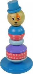 Klasyczna drewniana zabawka dla dzieci w kształcie balansowej wieży gwarantuje uśmiech na twarzy Twojego dziecka. W zestawie znajduje się kolorowy zestaw 6 zaokrąglonych pierścieni różnych rozmiarów i wzorów. Na szczycie piramidy znajduje się główka uroczego pieska, a w podstawie jest kołek do nakładania poszczególnych elementów, którego kształt jest półokrągły, co symuluje balansowanie i utrudnia nakładanie pierścienia na kołek.