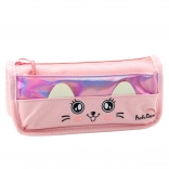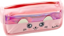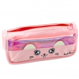 Wykonany w kolorze różowym, ozdobiony charakterystycznym motywem kota i przezroczystą wstawką z uszami, ten piórnik przyciąga uwagę i uprzyjemnia codzienne używanie szkolnych przyborów.