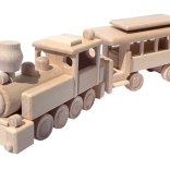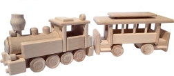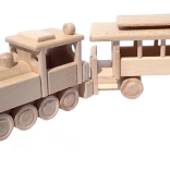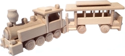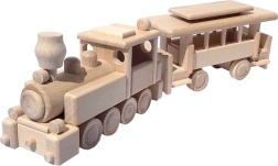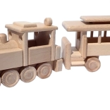 Pociąg wykonany jest z litego buku i wykończony jedynie woskiem oraz polerowaniem. Zachowuje autentyczny rysunek drewna, jest delikatny i bezpieczny dla dziecięcych rąk.
