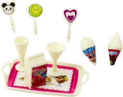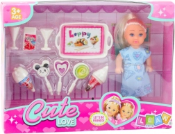 Zestaw zawiera laleczkę o wysokości 12 cm ubraną w niebieską sukienkę z uroczymi nadrukami oraz tematyczne akcesoria, takie jak lizaki, lody, rożki i tacka z przekąskami. Te akcesoria nie tylko urozmaicają zabawę, ale także wspierają rozwój wyobraźni, zdolności manualnych i umiejętności społecznych dziecka.