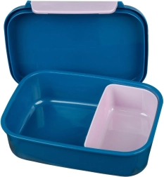 Szerokie klipowe zamknięcie zapewnia łatwe otwieranie i bezpieczne zamykanie, co jest idealne dla małych dziecięcych rąk. W środku znajduje się wyjmowana przegródka, która ułatwia oddzielne przechowywanie różnych produktów, takich jak owoce, ciasteczka czy kanapki.