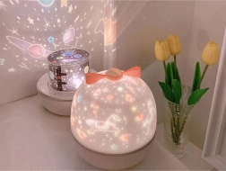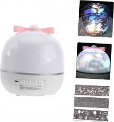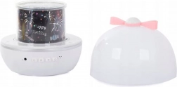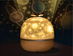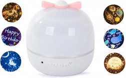 Projektor jest wyposażony w sześć różnych wzorników, które pozwalają dzieciom wyświetlać światy takie jak gwiaździste niebo, podwodny świat czy motywy świąteczne. Zawiera funkcję muzyki z uspokajającą melodią, która pomaga dzieciom łatwiej zasypiać.