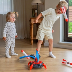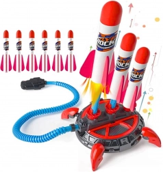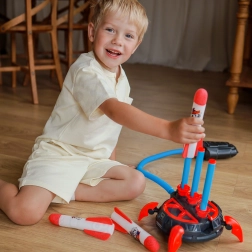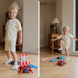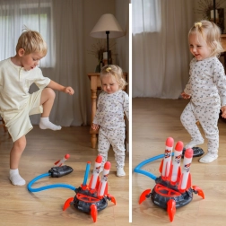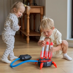 Silny impuls powietrza z nożnej pompy posyła miękkie piankowe rakiety naprawdę wysoko – świetne do zawodów i ćwiczenia oceny odległości.