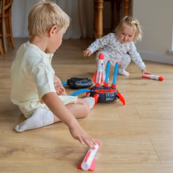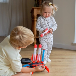 Ta wielocelowa piankowa wyrzutnia rakiet zapewnia dzieciom od 6 lat mnóstwo ruchu, radości i odkrywania. Wystarczy nacisnąć pompę, a miękkie piankowe rakiety bezpiecznie wzbiją się w górę. Stabilna podstawa mieści kilka rakiet jednocześnie i umożliwia łatwe oraz szybkie wystrzeliwanie.