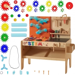 Odkryj solidny drewniany warsztatowy stół XXL marki MASTERKIDZ – idealne narzędzie STEM dla przedszkoli, szkół i nauki w domu. Wspiera kreatywność, małą motorykę oraz umiejętności techniczne dzieci. Dzięki blatowi typu pegboard, kołom zębatym, łańcuchowi, bloczkowi i narzędziom dzieci poznają zasady mechaniki, inżynierii i fizyki oraz zbudują działające przekładnie i tory kulkowe.