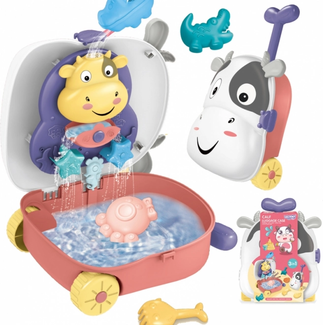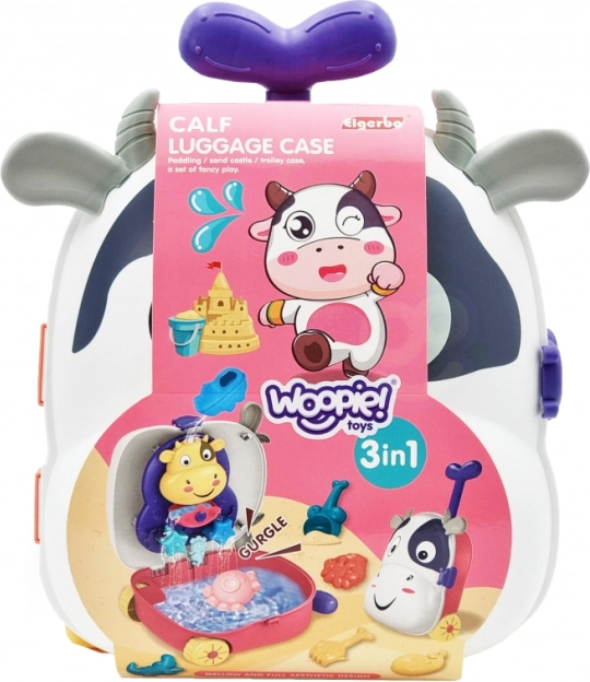 Woopie 3w1 kuferek z zestawem do piasku i wodny stolik – Krówka