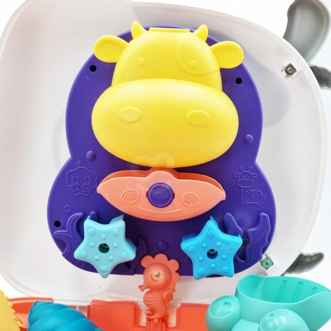 Uroczy kuferek w kształcie krówki marki WOOPIE łączy aż trzy zabawy w jednym: przenośny kuferek, zestaw do piasku oraz wodną zabawę. Wystarczy napełnić dolną część wodą, wlać wodę do górnej i obserwować, jak przepływa i spływa – świetne dla rozwoju zmysłów i koncentracji. Idealny na plażę, do piasku i w podróż.