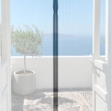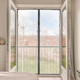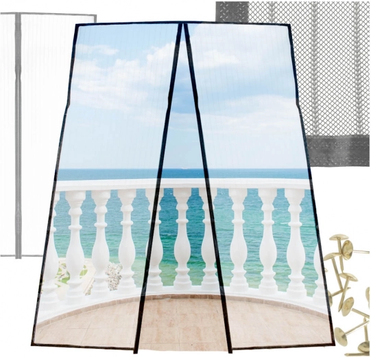 Praktyczna moskitiera z drobną, wytrzymałą poliestrową siatką zatrzymuje owady na zewnątrz, nie zaciemniając wnętrza. Prowadzone przez środek silne magnesy zapewniają płynne i samoczynne domykanie po każdym przejściu – idealne dla domów z dziećmi i zwierzętami.