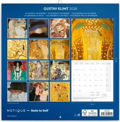 Ciesz się mistrzowskimi dziełami Gustava Klimta na stronach tego kalendarza notatkowego na rok 2026. Zawiera przejrzysty kalendarz, fazy miesięczne, ważne święta i miejsce na notatki na każdy dzień.