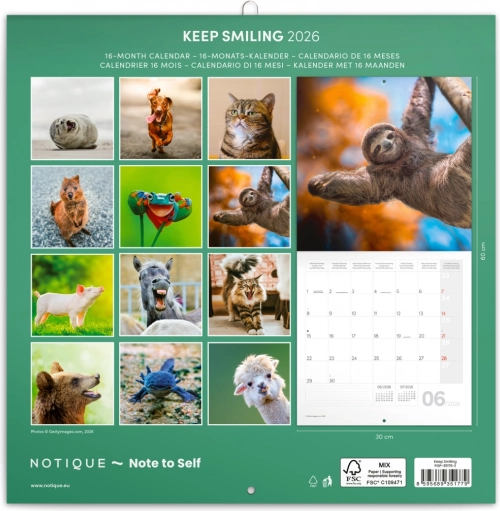 Wnieś do swojego domu lub biura radość i uśmiech każdego dnia dzięki naszemu kalendarzowi notatkowemu „Uśmiech, proszę” na rok 2026. Przez cały rok możesz inspirować się pięknymi zdjęciami uroczych zwierząt. Kalendarz nie ustępuje także pod względem funkcjonalności: