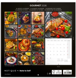 Wzbogać swoje wnętrze kalendarzem notatkowym Gourmet 2026, który oferuje fotografie luksusowych potraw dla każdego smakosza. Świetny dodatek do kuchni i jadalni.