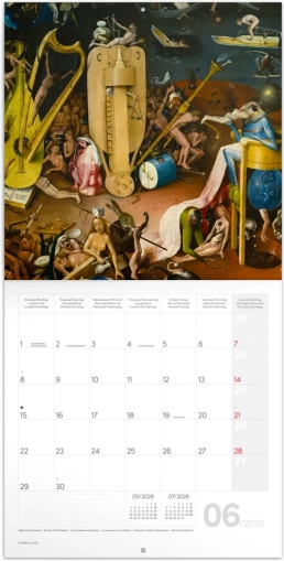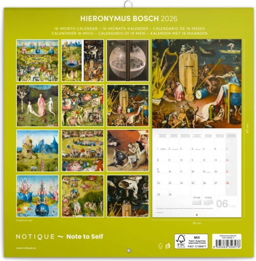 Wyrusz w świat fascynujących i surrealistycznych obrazów Hieronima Boscha z kalendarzem notatkowym na rok 2026. Detalne kompozycje, pełne symboliki i mistycznych scen, przeniosą Cię do fantastycznych wizji artysty.