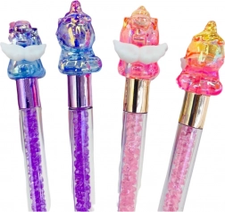 Długopis żelowy z czarnym atramentem i kolorowym wyglądem, ozdobiony obrotową figurką jednorożca, łączy praktyczność z niepowtarzalnym urokiem. Świetnie leży w dłoni dzięki długości 17 cm i łatwo go przenosić w piórniku, kosmetyczce lub torebce.