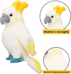 Papuga jest wykonana z miękkiego i przyjemnego w dotyku pluszu, który jest bezpieczny dla dzieci. Dzięki odpowiedniemu wypełnieniu zabawka stoi pionowo, co zwiększa jej atrakcyjność jako ozdoba lub element edukacyjny w tematycznych kącikach przyrodniczych.
