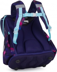 Plecak jest wyposażony w jedną pojemną komorę, do której zmieści się całe niezbędne wyposażenie szkolne. Dla większej praktyczności tornister uzupełniono o dodatkowe haczyki do mocowania pasków. Sztywne dno chroni zawartość przed ewentualnym przewróceniem i rozsypaniem, a bezpieczna metalowa klamra z odblaskiem zapewnia łatwe i bezpieczne zapinanie.