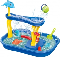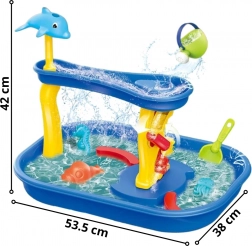 Wodna zabawka 2w1 z kołowrotkiem wodnym i zjeżdżalnią wodną – idealna na lato! Stwórz unikalną strefę zabawy dla dzieci w ogrodzie lub w domu. Zabawnym, kolorowym stolikiem łączącym zabawę w łowienie rybek, spuszczanie wody i obserwowanie jej przepływu przez różne konstrukcje jak kołowrotek czy zjeżdżalnia z delfinem.