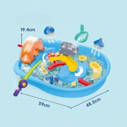 Odkryj radość z wodnej zabawy z tą kolorową zabawką wodną zawierającą koło i akcesoria wędkarskie! Idealna dla małych odkrywców, którzy będą się cieszyć zabawnymi wodnymi eksperymentami i łowieniem rybek w domu i na zewnątrz.