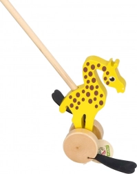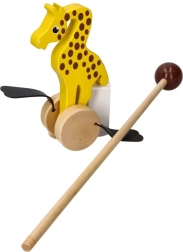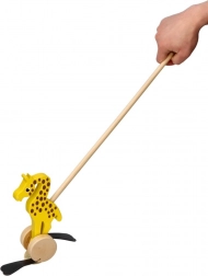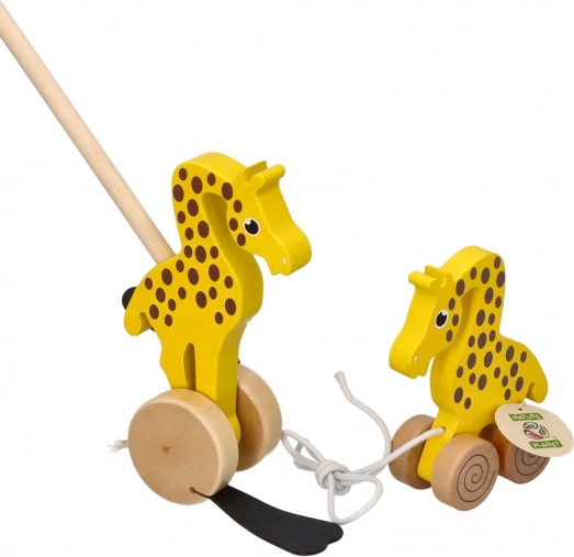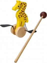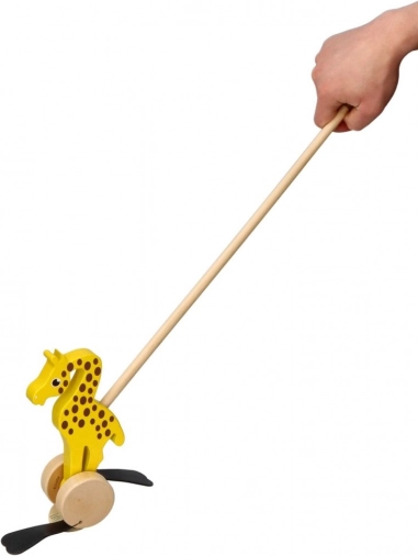 Długi drewniany drążek umożliwia dzieciom pewne prowadzenie zabawki i naturalnie wspiera naukę chodzenia oraz utrzymywanie równowagi.