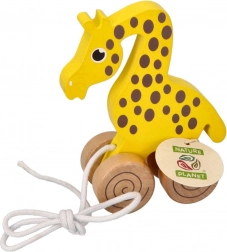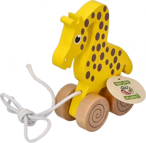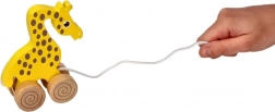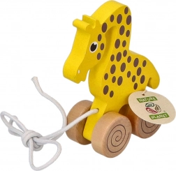 Podczas ciągnięcia żyrafa płynnie porusza się na drewnianych kółkach, co wspiera motorykę dużą, koordynację i równowagę. Ponadczasowy, naturalny design pasuje do każdego dziecięcego pokoju i świetnie sprawdzi się jako prezent.