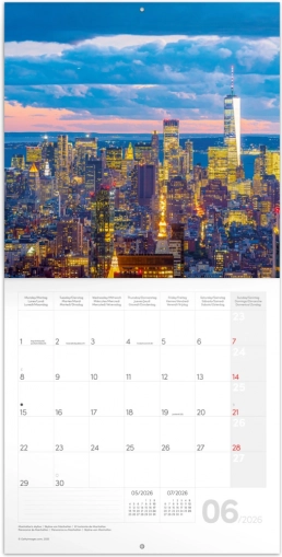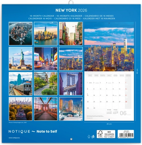 Ciesz się rokiem 2026 z tym zachwycającym kalendarzem notatkowym z motywem Nowego Jorku. Zawiera dwanaście najwyższej jakości fotografii miasta i jest wyposażony w sześciojęzyczne kalendarium, które zapewnia przegląd faz księżyca oraz ważnych świąt.