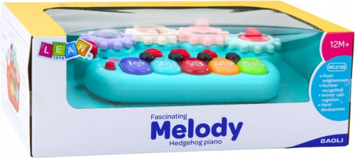 Pianinko zostało zaprojektowane z myślą o dzieciach od 12 miesięcy. Wspiera naukę kolorów, liczb, dźwięków i ruchu. Na panelu znajduje się 5 kolorowych klawiszy z numerami i zwierzątkami, które po naciśnięciu wydają dźwięki i melodie.