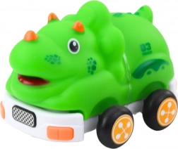Dzięki wytrzymałym materiałom samochodzik jest gotowy zarówno do zabawy na zewnątrz, jak i w pomieszczeniach. Ciche i stabilne kółka umożliwiają łatwy ruch, a przyjazna buzia dinozaura pobudza dziecięcą wyobraźnię.