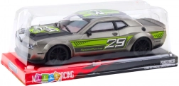 Sportowy samochód w srebrno-zielonej kolorystyce ucieszy wszystkich miłośników szybkich wyścigów i precyzyjnych modeli. Dzięki mechanicznemu napędowi tylnemu auto łatwo porusza się do przodu bez potrzeby użycia baterii, co symuluje naturalną jazdę. Model wykonano z wytrzymałych materiałów odpornych na bardziej intensywną zabawę, a jego realizm podkreślają numer 29 i wyścigowe detale. Doskonale nadaje się do zabawy w domu i na zewnątrz na równych nawierzchniach.