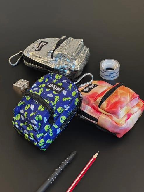 Sprzedażowy display zawierający 18 stylowych mini plecaków idealnych do przechowywania drobnych niezbędników. Dzięki praktycznemu designowi i srebrnemu karabińczykowi można je łatwo przymocować do roweru, hulajnogi, plecaka lub torby.