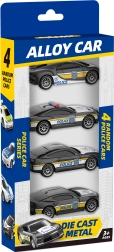 - Zawiera 4 unikalne radiowozy z napędem typu pull-back