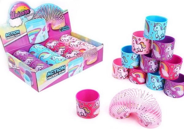 Wzbogać swoją kolekcję o unikalną sprężynę z motywem jednorożca, która wnosi nie tylko zabawę, ale i odrobinę uroku do każdej chwili. Dzięki wymiarom 7,6 x 7,6 x 6,5 cm jest idealna do zabawy i jako ozdoba. Dostępna w czterech pięknych kolorach – niebieskim, fioletowym, czerwonym i różowym.