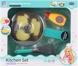 - Zawartość zestawu: Patelnia, buteleczka z ketchupem, łopatka i trzy imitacje produktów spożywczych.