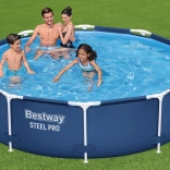 Przydomowy basen Bestway o średnicy 306 cm i wysokości 76 cm to idealny wybór na gorące dni. Konstrukcja basenu pozwala na napełnienie go w 90% wodą, co oznacza pojemność 4678 litrów. Wykonany z trójwarstwowego, wytrzymałego PVC odpornego na chlor i promieniowanie słoneczne.