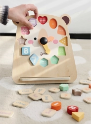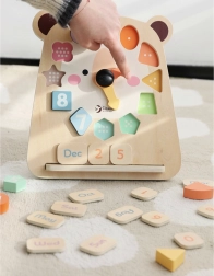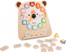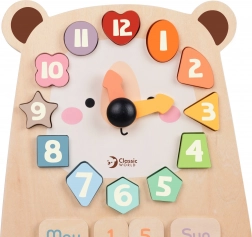 Drewniany zegar w kształcie misia marki Classic World to wszechstronna zabawka, która pomaga dzieciom uczyć się czasu, dni tygodnia, miesięcy oraz rozpoznawania kolorów i kształtów. Dzięki wyjmowanym klockom z liczbami i napisami maluchy mogą ćwiczyć koordynację ręka–oko, logiczne myślenie i umiejętności manualne.