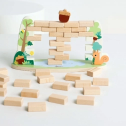 Gra zręcznościowa Spadający żołądź od Classic World to fascynujące wyzwanie dla dzieci, rozwijające ich zręczność, cierpliwość i logiczne myślenie. Zadaniem graczy jest wyciągać drewniane klocki z wieży, nie doprowadzając do upadku żołędzia na szczycie.