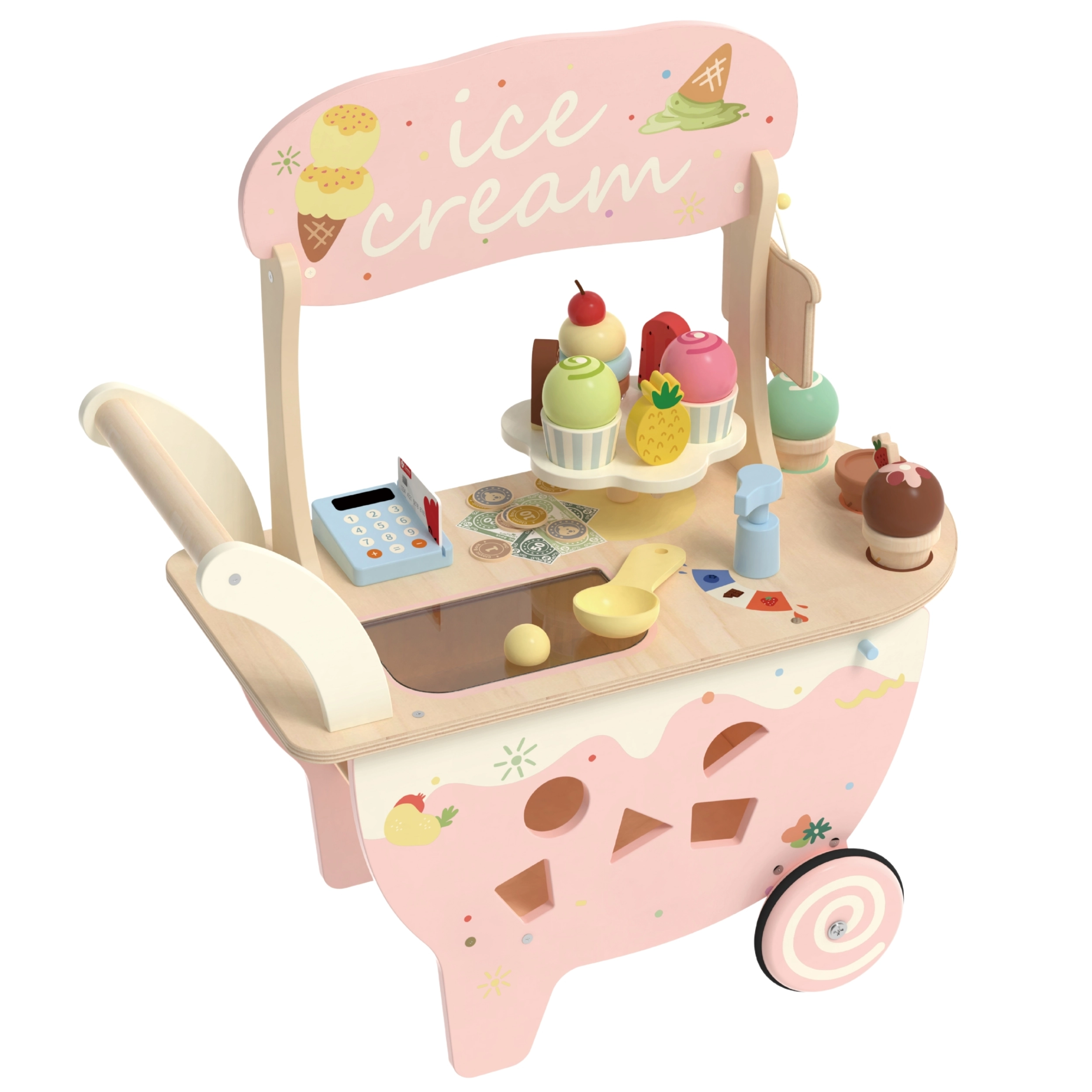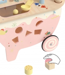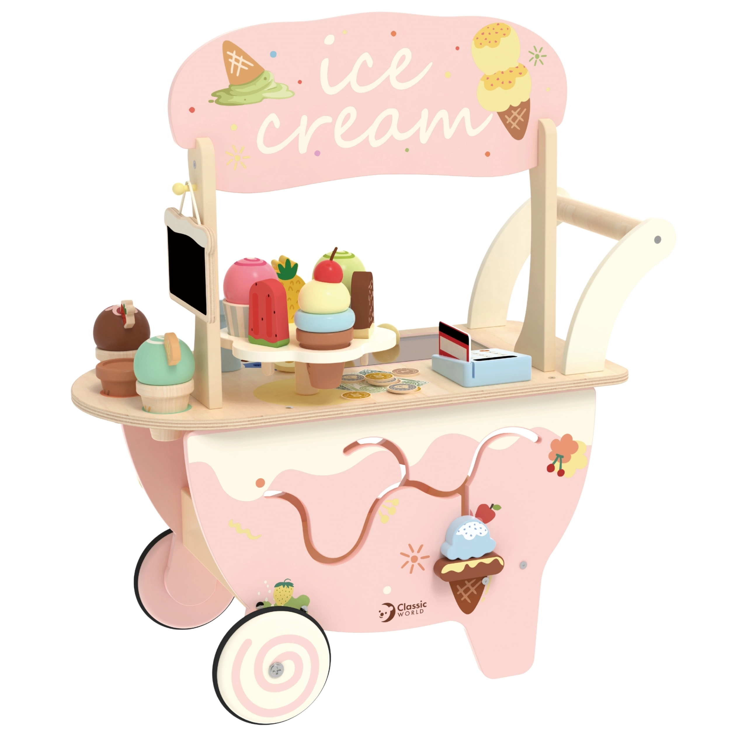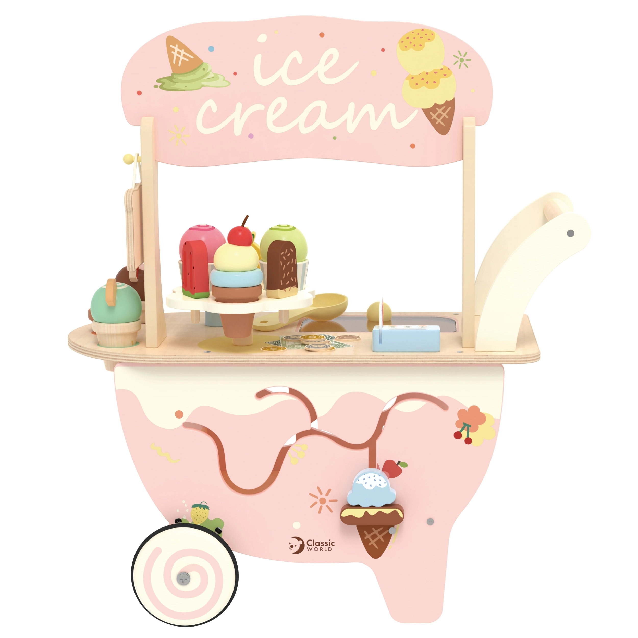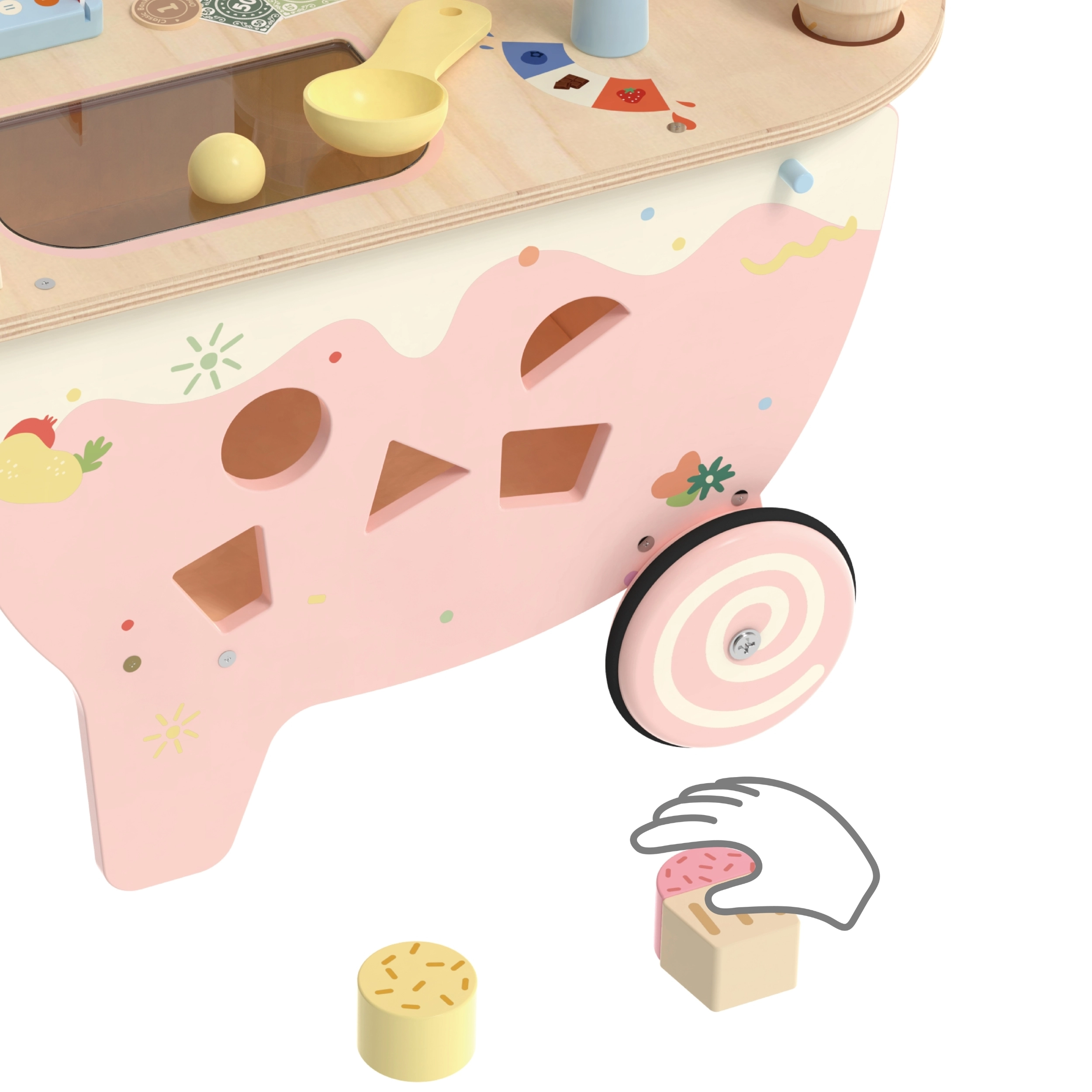 Przedstawiamy drewnianą lodziarnię 3w1 od Classic World, idealną dla dzieci od 3 lat. Ta multifunkcyjna zabawka służy nie tylko jako lodziarnia, ale także jako sorter, labirynt i tablica do rysowania. Wykonana z trwałych i bezpiecznych materiałów, z pastelowymi kolorami i ozdobnymi nadrukami, które zachwycą każdego małego sprzedawcę. Dzięki bogatej liczbie lodowych akcesoriów, w tym różnych smaków, dodatków i rożków, dzieci mogą w pełni zanurzyć się w zabawie w sklep lub lodziarnię.